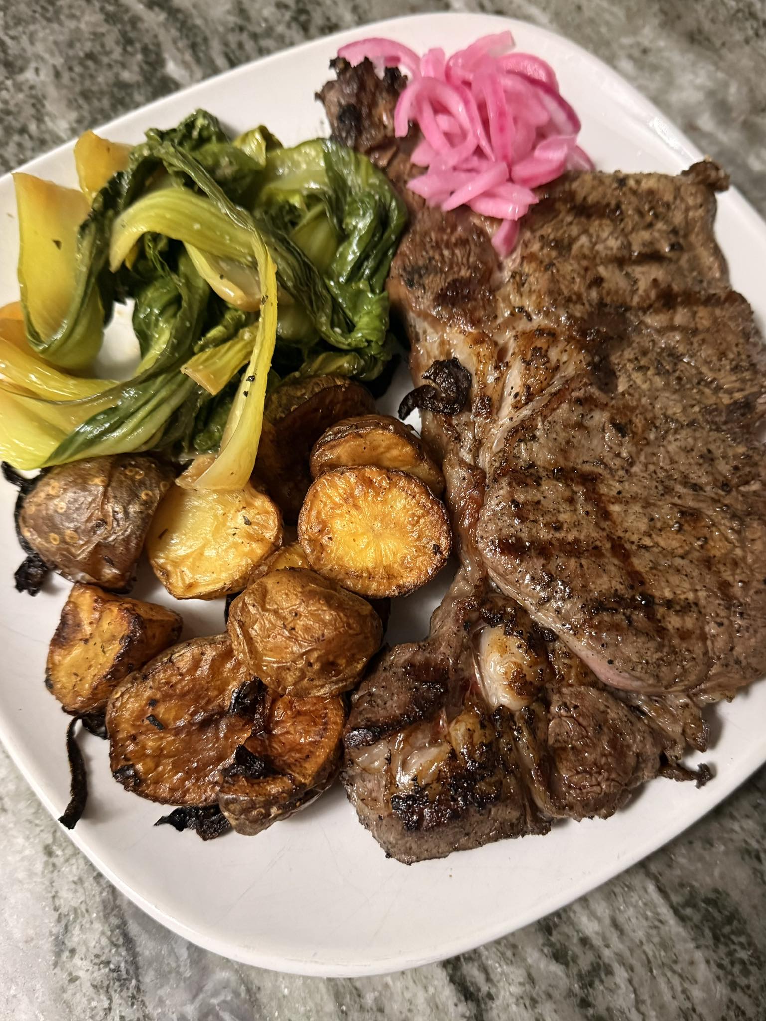 - Pickled Red Onions: The essential “bright” note that cuts through the richness of the steak and potatoes.